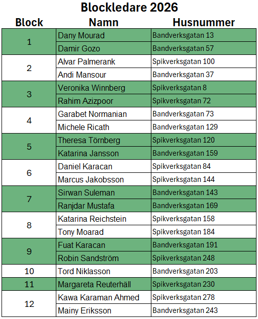 Städschema, instruktioner för städning och blockindelning finns i menyn under knappen ”Städdagar/sommarunderhåll”.